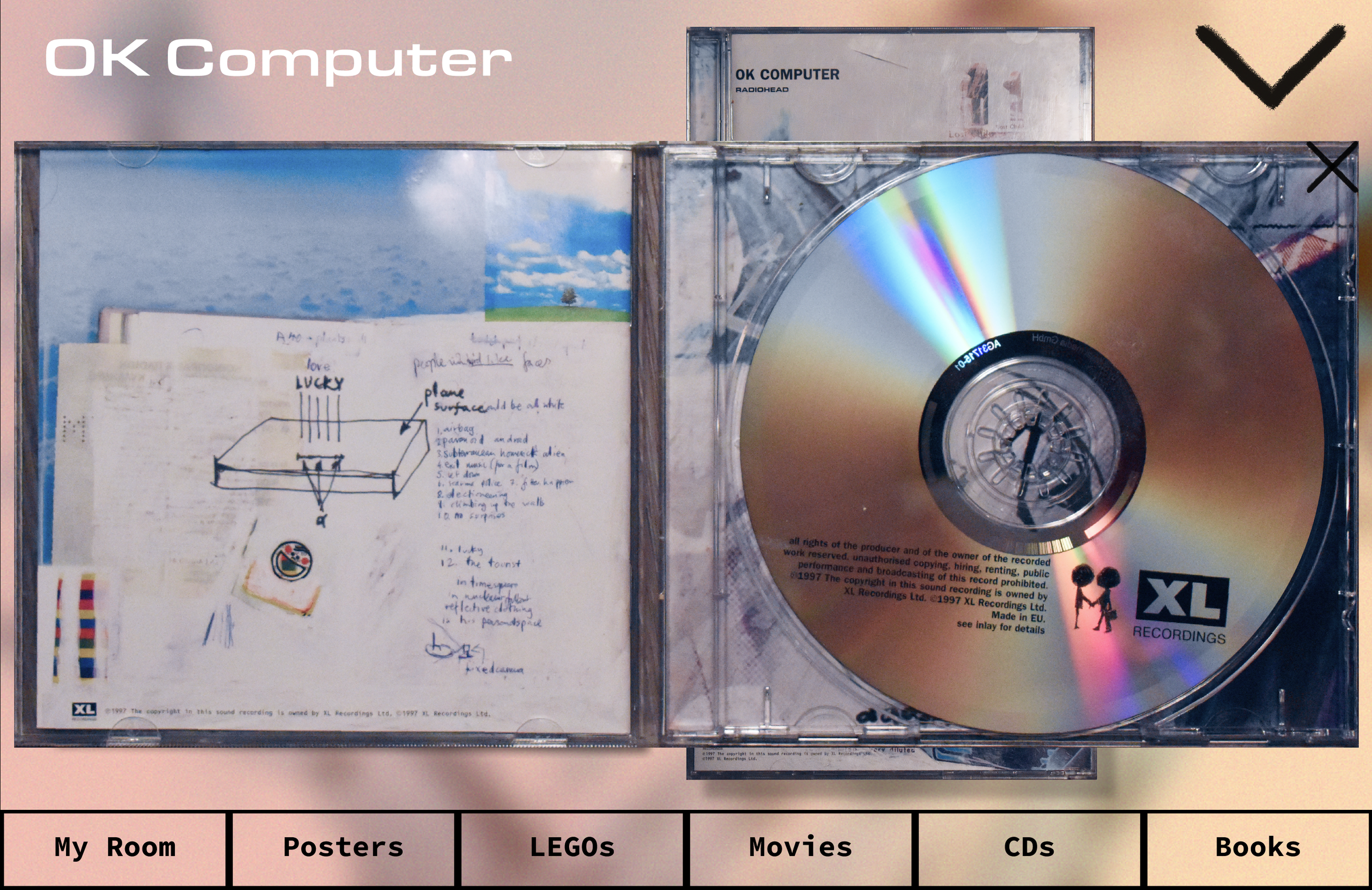 This prototype website was made to be a personal website akin to websites of the early 2000s. The website is designed around the current layout of my bedroom and the items within it.
